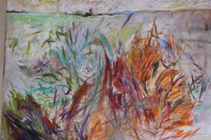 This is my first try at doing a large encaustic piece…this is done on a panel 6’x3’…a lot of waxing went into this piece…when I am finished I use a blow torch to fuse each layer and then use a standard car polisher to polish…very exciting in person…I love the texture possible with waxing…my new passion!