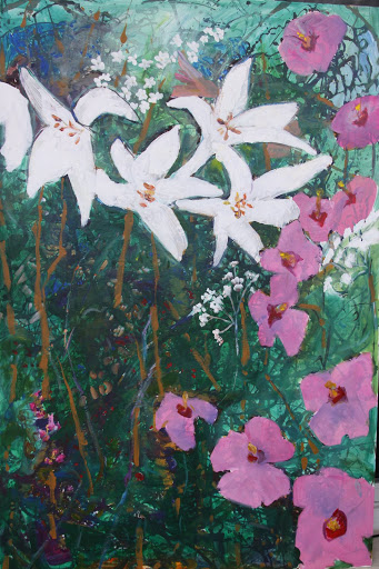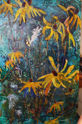 This is a painting I did for my friend Diana…it is on panels with acrylic…BIG!! each panel is 6’x3’…a lot of fun to do!