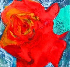 so a read rose…and the most thrilling thing about this painting is the aqua